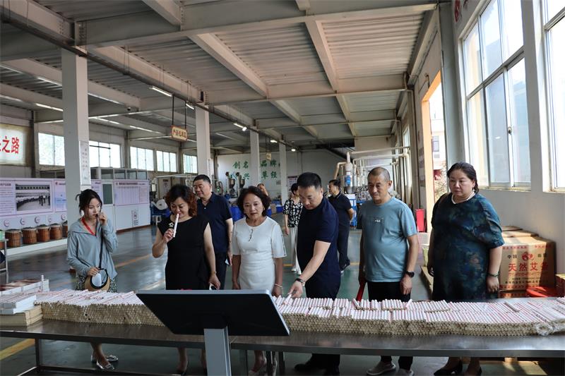 參觀第三站是2021年習近平主席視察過的藥益寶艾草制品有限公司。該公司多年來銳意進取致力于艾草制品的不斷研發(fā)。公司位于醫(yī)圣(張仲景)故里、中草藥之都----河南南陽。南陽藥益寶艾草制品有限公司憑借著得天獨厚的生態(tài)環(huán)境和豐富優(yōu)質的艾草資源為產(chǎn)品提供了最優(yōu)質的保證。公司資深創(chuàng)始人潛心研究艾草十余年,先后研發(fā)出傳統(tǒng)艾條,無煙艾條,艾絨、艾粒、迷你灸系列等近幾十種產(chǎn)品,產(chǎn)品遠銷日本、韓國、東南亞、歐洲等幾十個國家。在參觀過程中,許昌市企業(yè)家協(xié)會有2家企業(yè)負責人與該公司有合作意向。