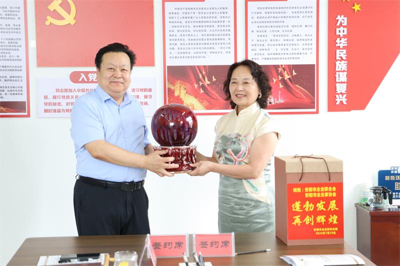 秘書(shū)長(zhǎng)黃玉霞、七月份輪值會(huì)長(zhǎng)婁玉陣、八月份輪值會(huì)長(zhǎng)任天培、一月份輪值會(huì)長(zhǎng)錢(qián)俊霞、七月份輪值副會(huì)長(zhǎng)張?zhí)┟竦纫恍?人先后參觀了安陽(yáng)市企業(yè)家協(xié)會(huì)黨群服務(wù)中心和企協(xié)文化長(zhǎng)廊。在隨后的交流環(huán)節(jié)中,許昌市企業(yè)家協(xié)會(huì)與安陽(yáng)市企聯(lián)舉行友好合作簽約儀式。雙方就如何更好地做好協(xié)會(huì)工作,服務(wù)黨政大局、助力企業(yè)發(fā)展等進(jìn)行了深度交流。大家一致認(rèn)為,在當(dāng)前的大環(huán)境下,不僅企業(yè)間要做到抱團(tuán)取暖,協(xié)會(huì)之間也要加強(qiáng)聯(lián)系,相互學(xué)習(xí)借鑒、共享資源、共謀發(fā)展。