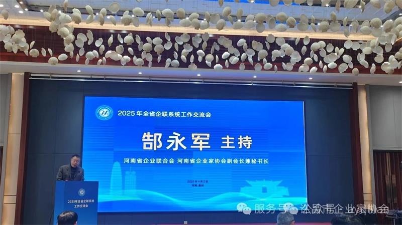 2025年4月2日,由河南省企業(yè)聯(lián)合會主辦、鄭州市企業(yè)聯(lián)合會承辦的全省企聯(lián)系統(tǒng)工作交流會在登封中州華鼎飯店成功召開。河南省企聯(lián)副會長田富軍出席會議并作重要講話,副會長兼秘書長郜永軍主持大會。