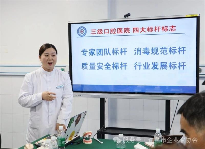 會議特別邀請許昌皓博口腔醫(yī)院醫(yī)務(wù)科科長王川為與會企業(yè)家?guī)?口腔保健知識"專題分享。王川從專業(yè)角度深入淺出地講解了口腔健康的重要性、口腔與全身健康的關(guān)聯(lián)、日??谇蛔o理要點以及醫(yī)療無菌操作規(guī)范等內(nèi)容,為企業(yè)家們上了一堂生動的健康管理課。