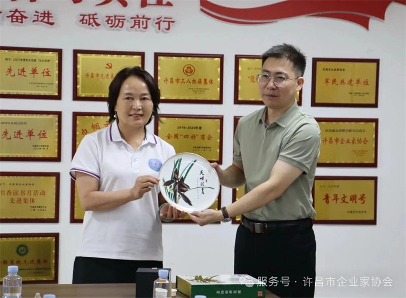 交流結束后,雙方互贈紀念品。貴陽市人民政府駐武漢辦事處向協(xié)會贈送了中共貴陽市委、貴陽市人民政府定制的精美的陶瓷藝術圓盤,協(xié)會回贈了具有許昌文化特色的鈞瓷主人杯。此次交流不僅加深了彼此了解,更為今后深化合作奠定了堅實基礎。雙方一致表示,將以此為契機,建立長效溝通機制,推動資源共享,實現(xiàn)互利共贏。